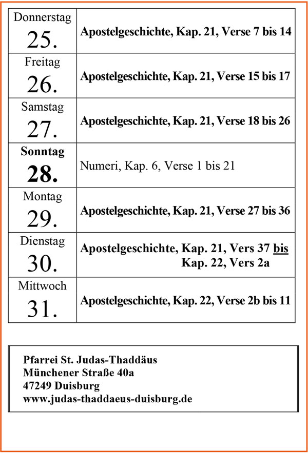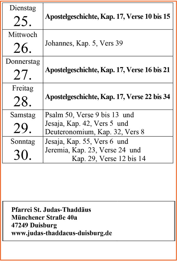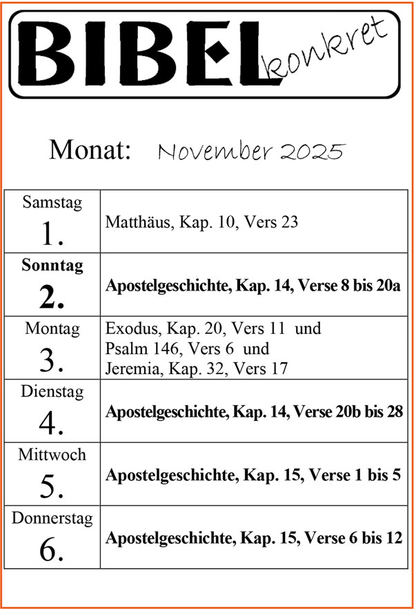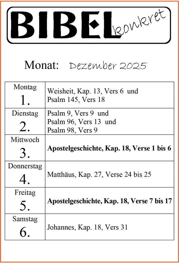 Unter dem Namen "Bibel konkret" wird seit vielen Jahren in unserer Pfarrei ein Bibel-Leseplan erstellt und in den Kirchen von Serm und Mündelheim ausgelegt.
